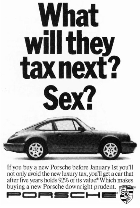 It pulls you in, then flips fast to logic: avoid a new luxury tax and get a car that holds 92% of its value.