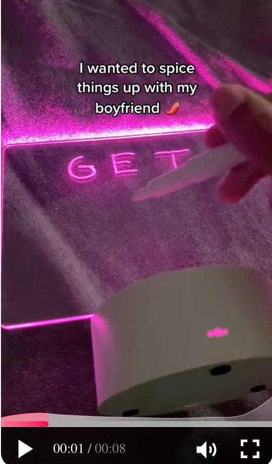 First, a spicy text hook on top of a video where someone uses the actual product to write a different message: