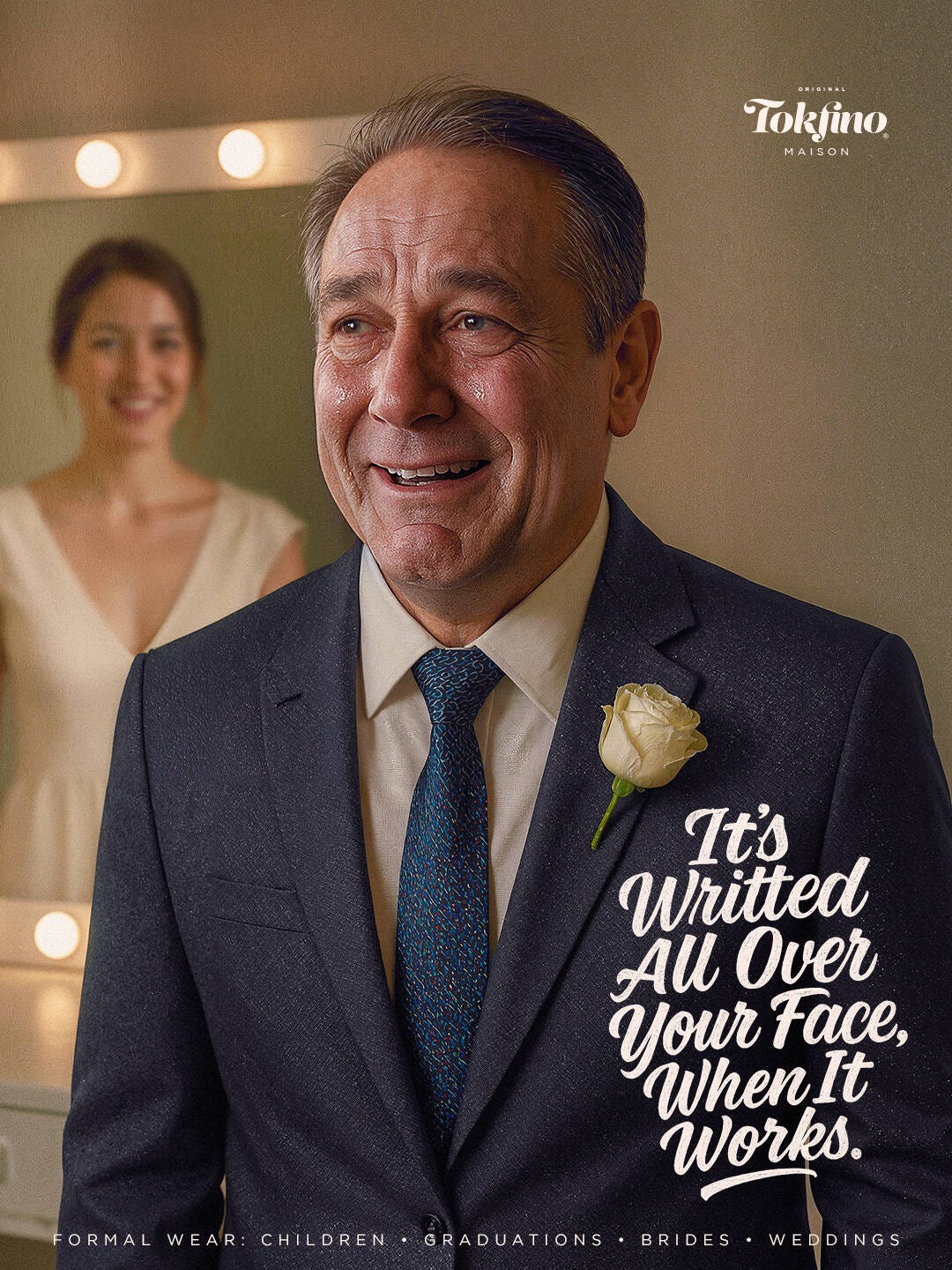 Their campaign shows a father in a suit with tears streaming down his face as he first sees his daughter as a bride.