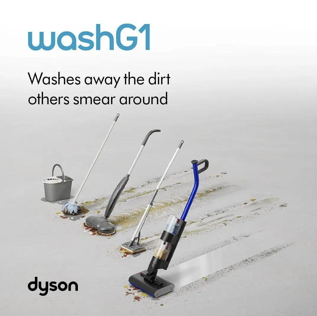 Dyson’s ad for the WashG1 vacuum mop makes a “clean” statement, here’s the creative: