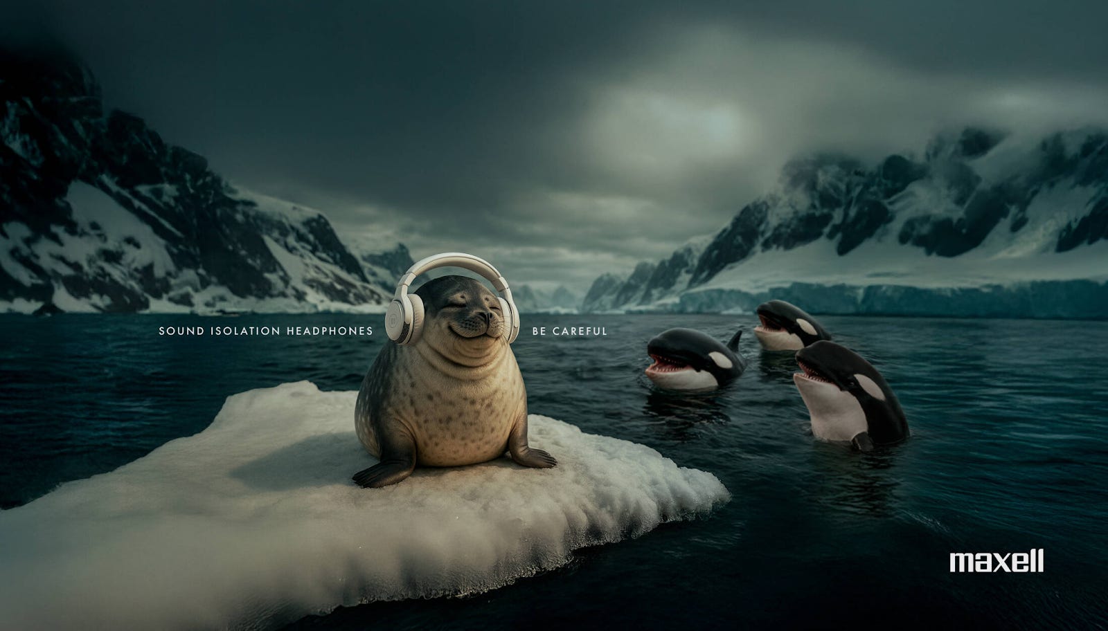 The ad shows a seal blissfully unaware that it’s being hunted—because the headphones are blocking out everything.